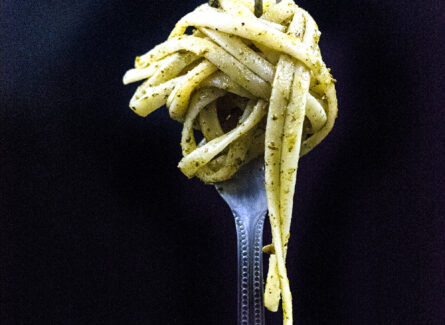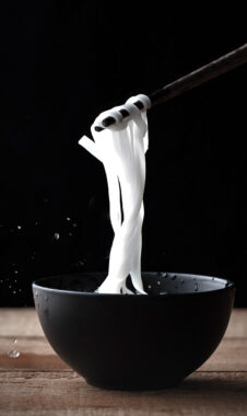 In the realm of photography, an artful composition captures the essence of a fork adorned with a single noodle ..